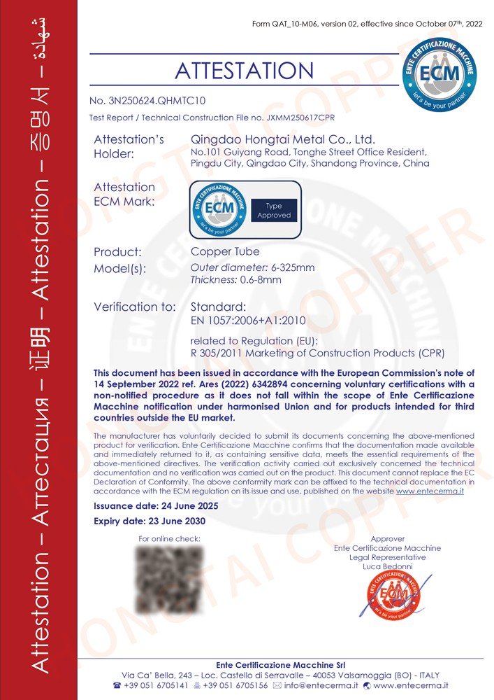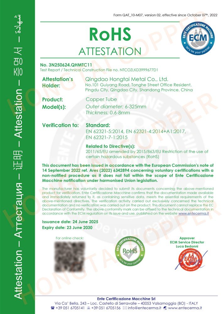 喜讯:AG注册官网铜管顺遂通过欧盟CPR与ROHS标准认证